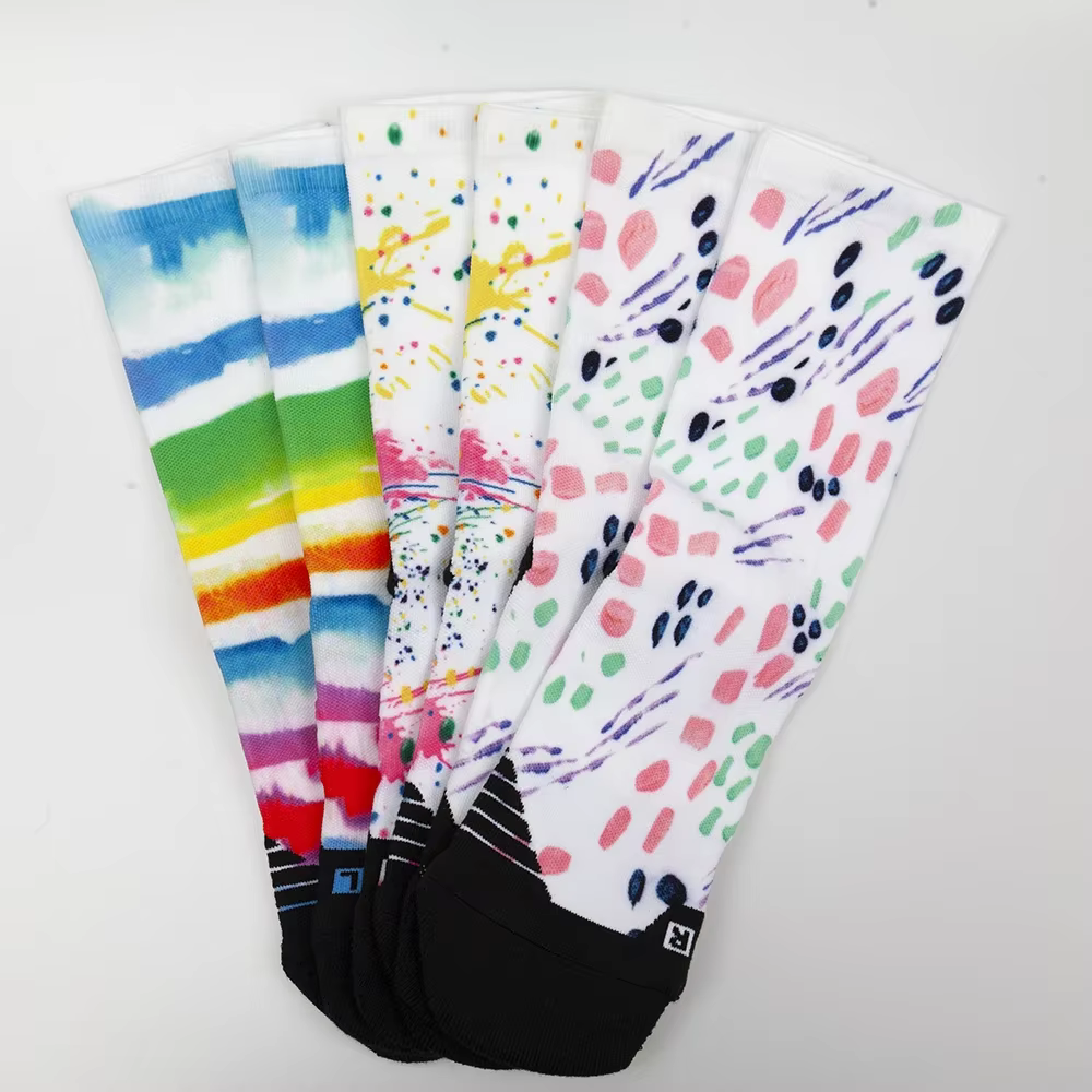 Athletic Socks Customized Sublimation Printed Cycling Compression Sports Socks