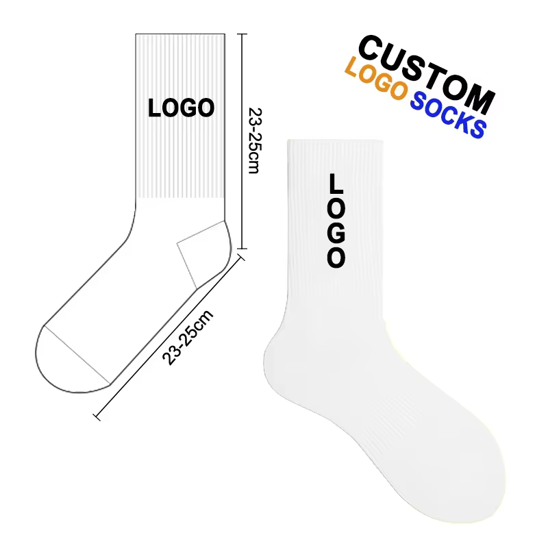 Customized logo socks are an innovative textile product that combines personalized design and practical functions. With ""exclusive logo+comfortable wearing"" as the core selling point, it provides customized services for individuals, enterprises, and various organizations who pursue uniqueness and brand expression. The product breaks the homogenization limitations of traditional socks by incorporating exclusive logos, patterns, text and other elements into the design. It not only retains the comfortable attributes of daily wear, but also endows the product with extended value such as identity recognition, brand communication, and emotional transmission, becoming a popular choice in trendy consumption and business application scenarios.