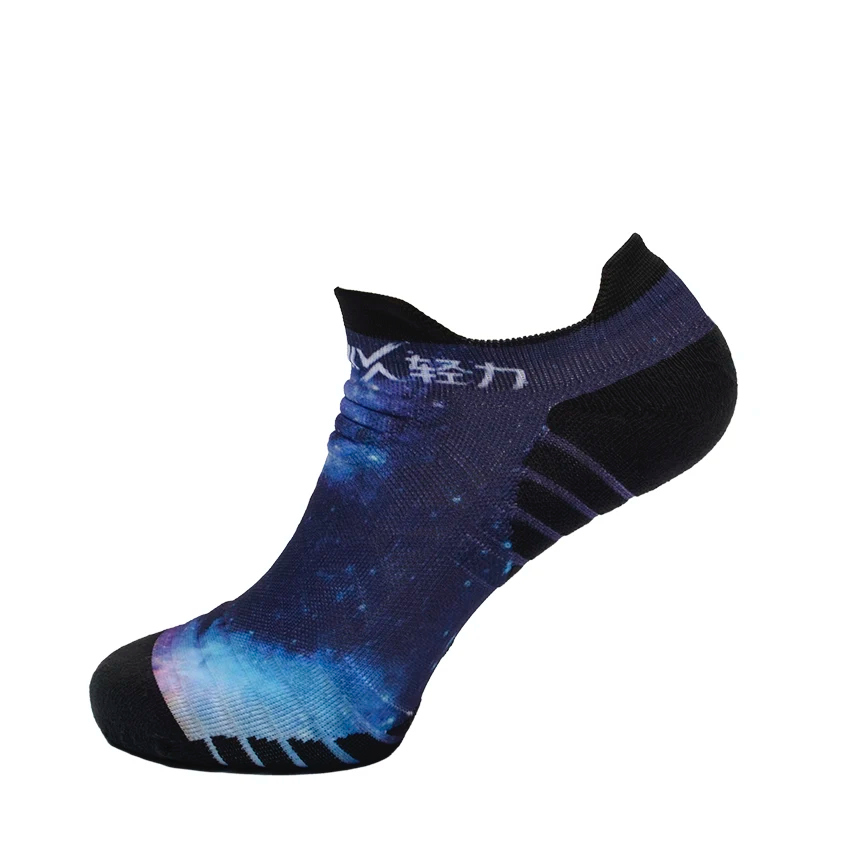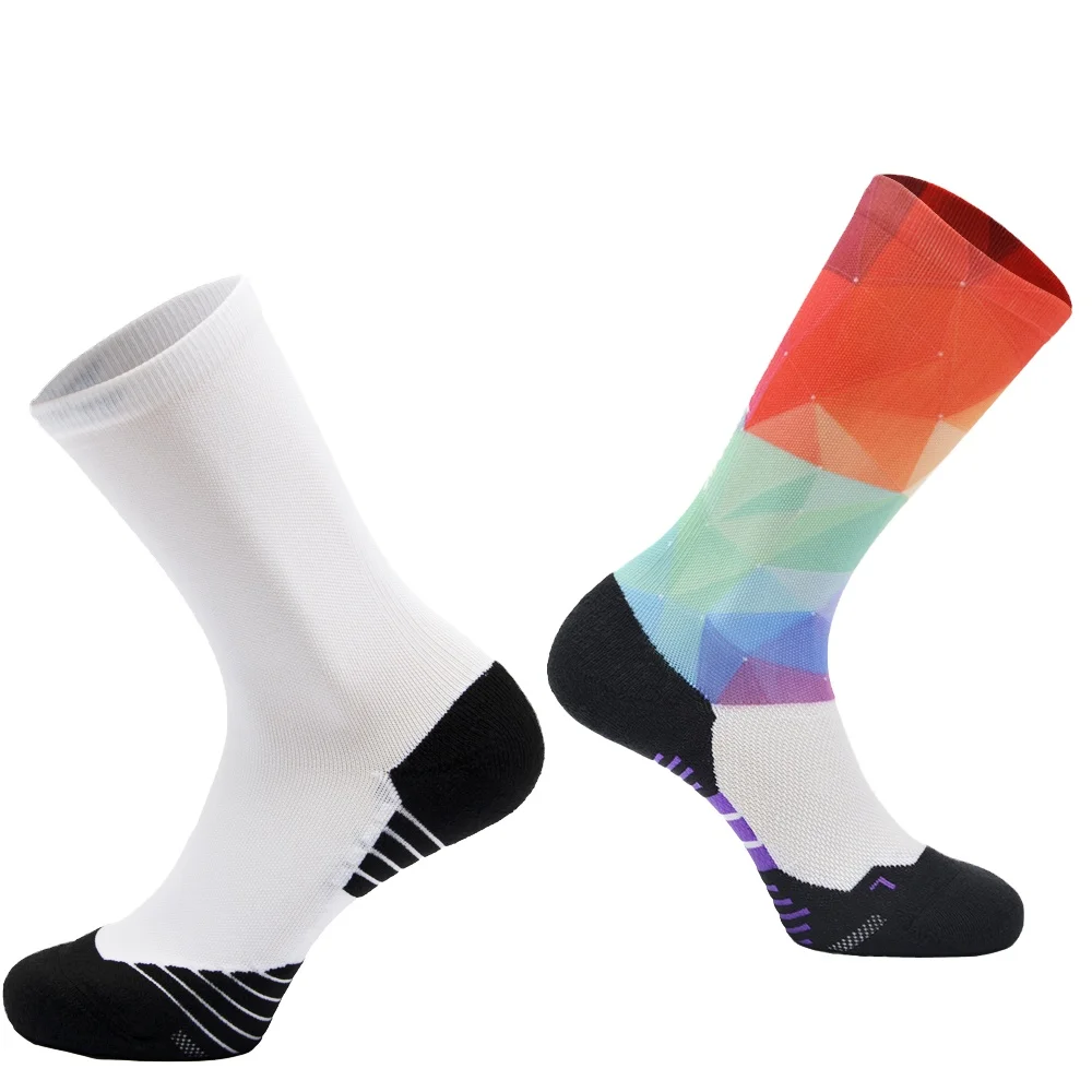 Superior Comfort: Smoothness Against the Skin: A jacquard sock, by its nature, has an interior filled with floating yarns and small knots where different colored threads interlace. These can create pressure points and cause irritation, especially during prolonged wear or physical activity. In contrast, a digitally printed sock is knit as a single, uniform base fabric (often a smooth jersey stitch). The printing occurs on the exterior, leaving the interior perfectly smooth and free of any obstructive textures, offering a ""second-skin"" feel that prioritizes wearer comfort.